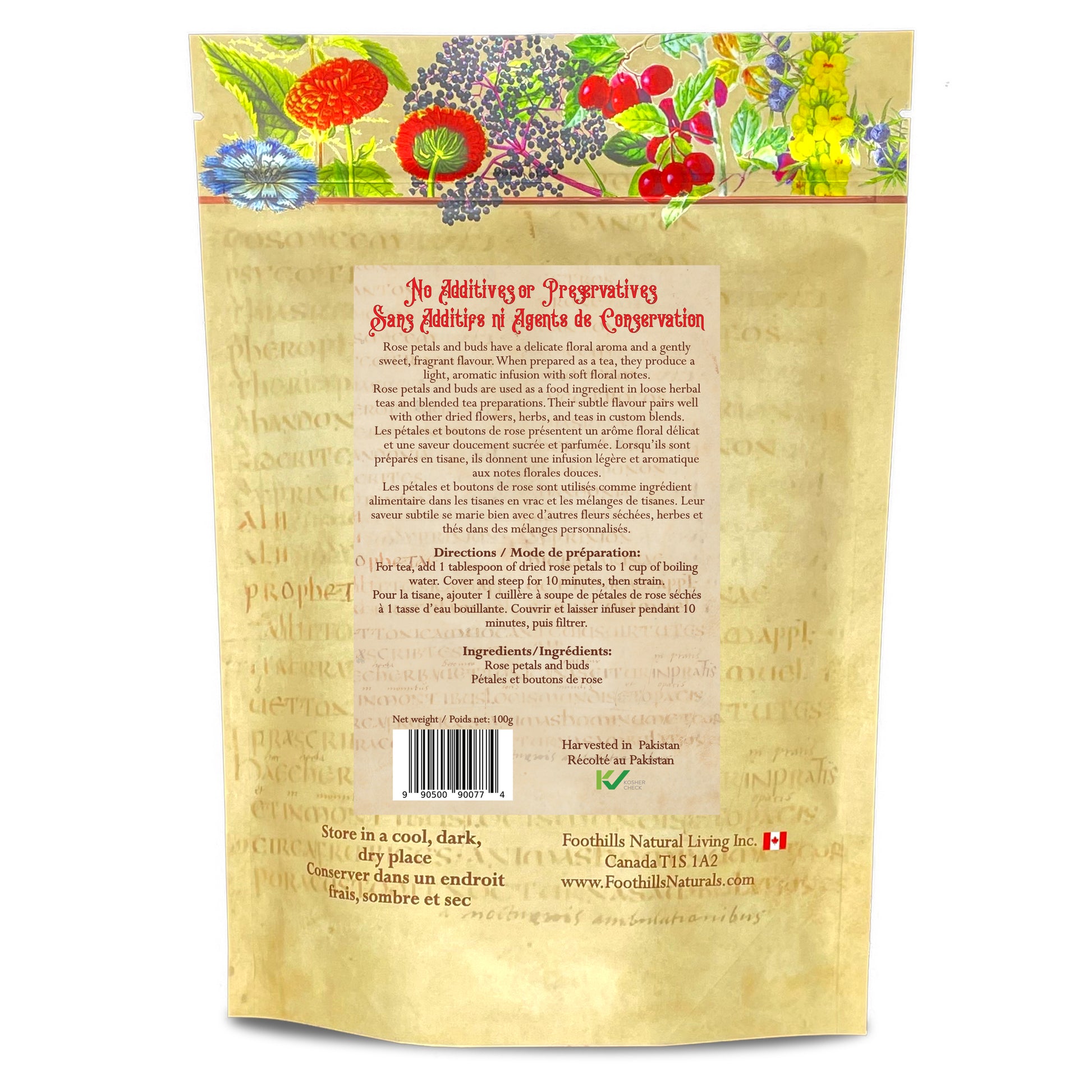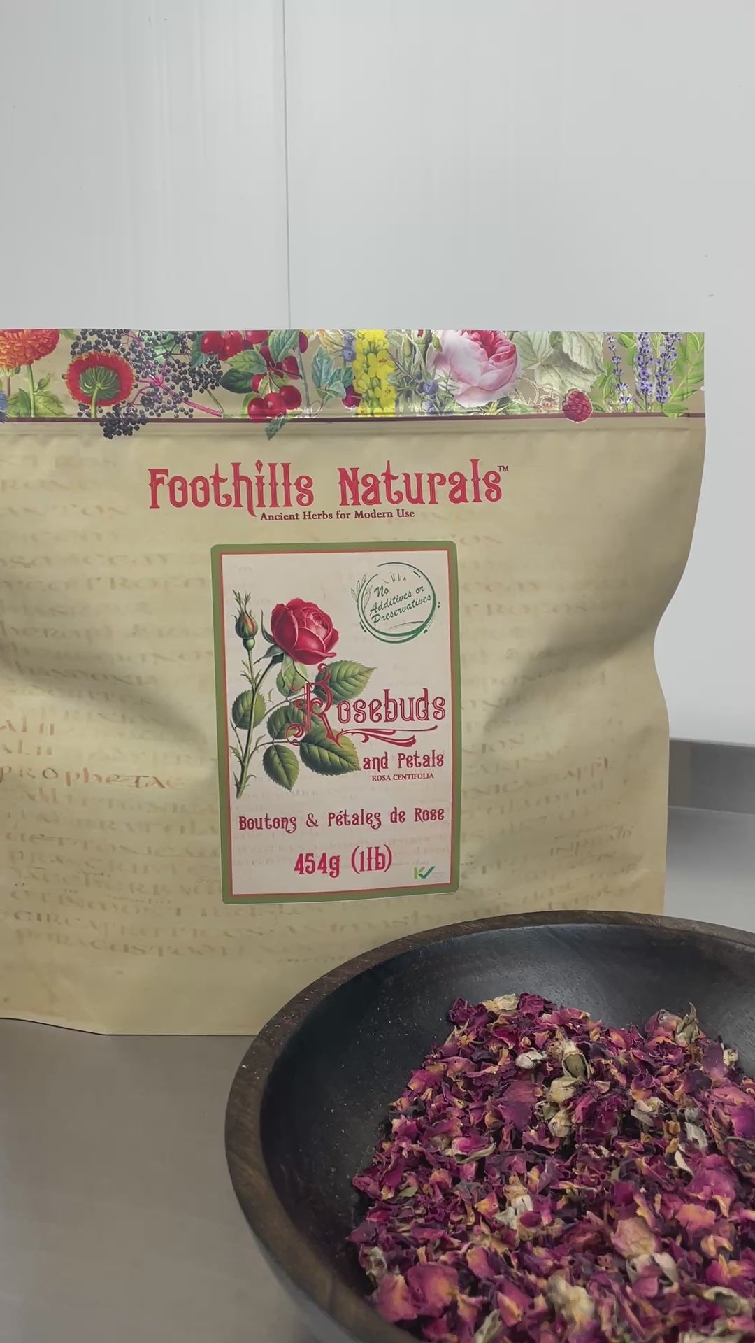 Single Ingredient: Contains only dried rose petals and buds.